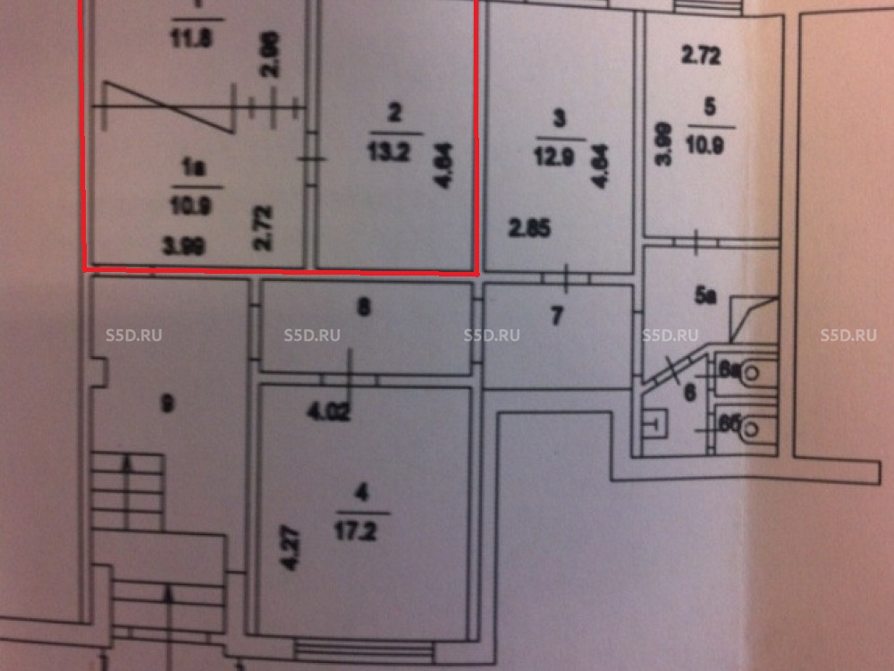 Общая площадь: 55 м2