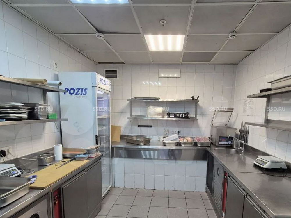 Общая площадь - 753,6 кв. м. 1 этаж зал - 403,6 кв. м., цоколь (кухня) - 320 кв. м. Витринные окна. Два входа - главный вход с первой линии, запасной для разгрузки со двора. Электрическая мощность 162 кВт. Все центральные коммуникации. Высота потолка - 4,2 м. Парковка перед зданием.