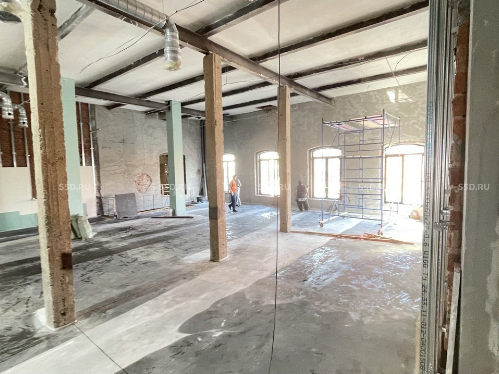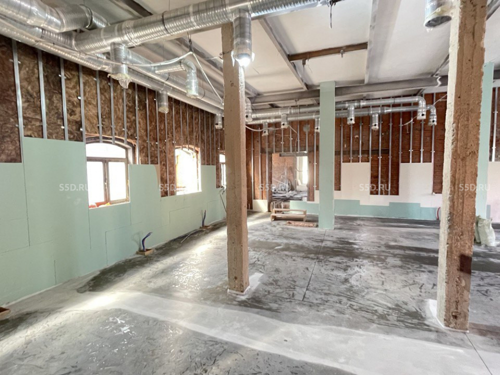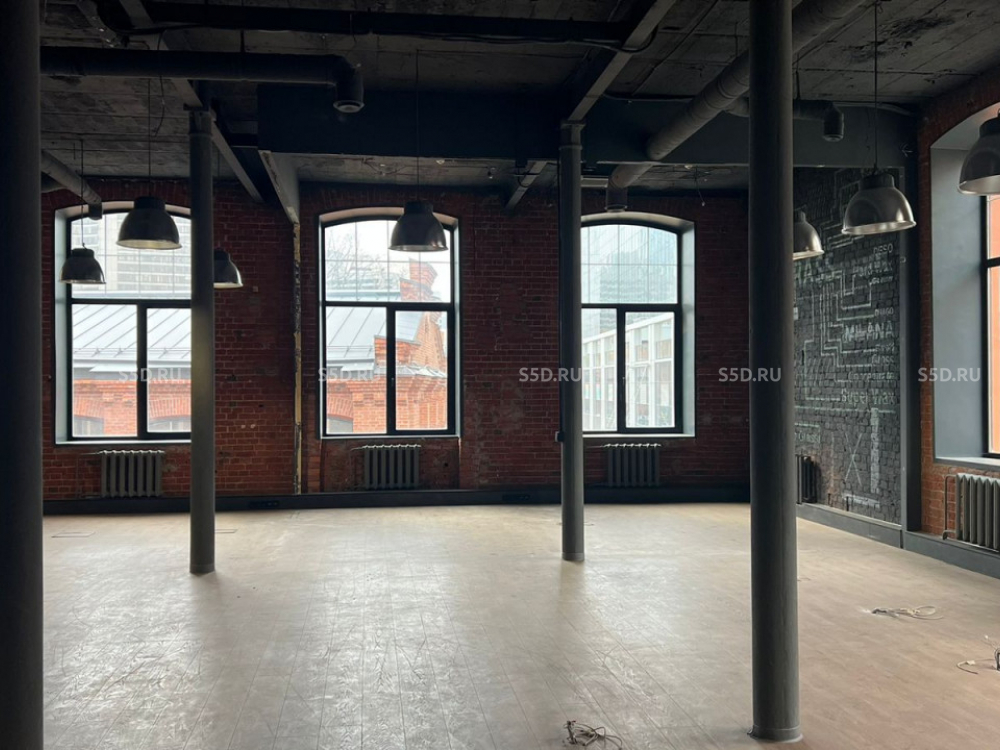 4-й этаж - Отдельный лифт. Высота потолков - 5,5 м. Ремонт - под отделку. Смешанная планировка.
