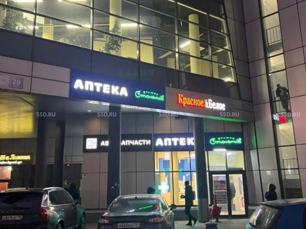 Отличные рекламные возможности. Отдельный вход с улицы, панорамное остекление фасада. Электрическая мощность: 120 кВт, высота потолков 5.7 м.