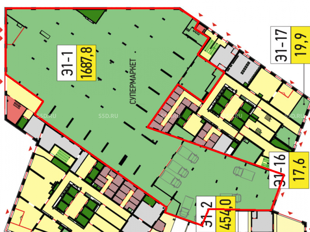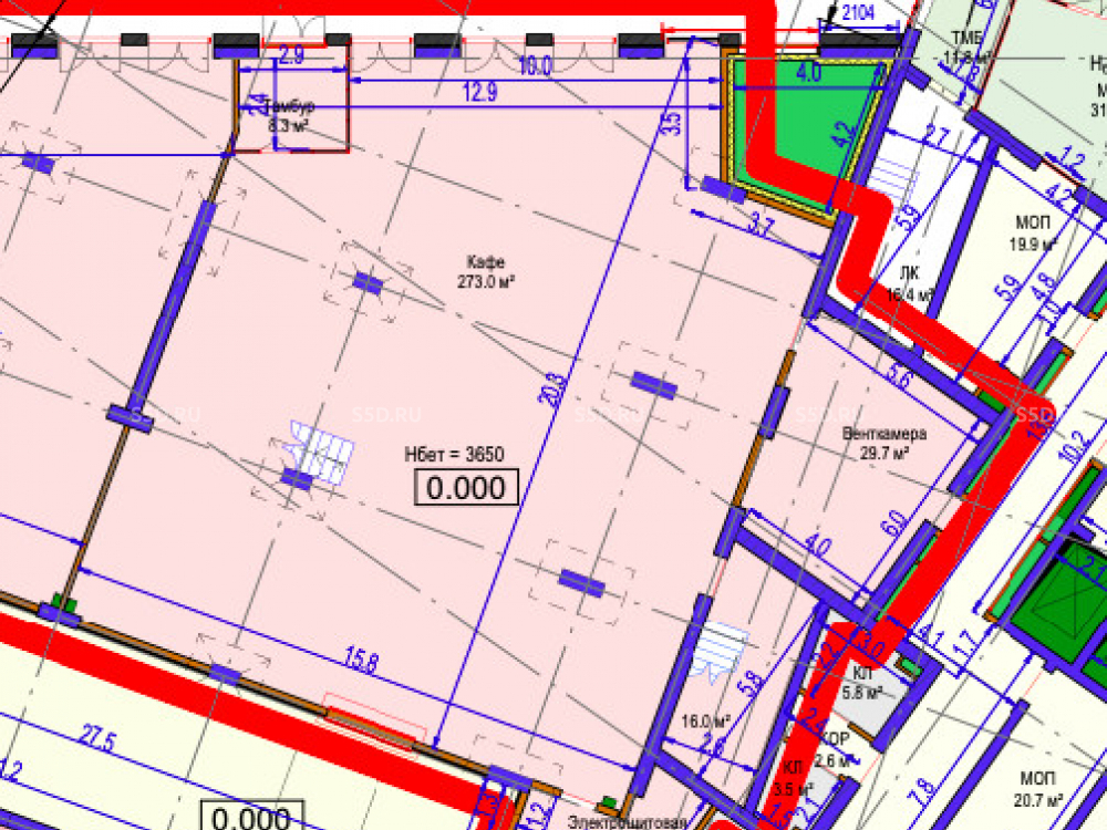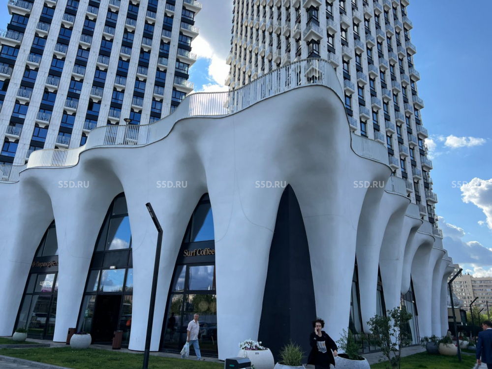 Стилобатная часть, общая площадь 630 м, 1 этаж - 315 м2; 2 этаж - 315 м2. Собственная, независимая от общедомовой, вытяжка. Высокие потолки, окна в пол, три входные группы. Своя зона разгрузки со стороны паркинга Количество электроэнергии 115 кВт.