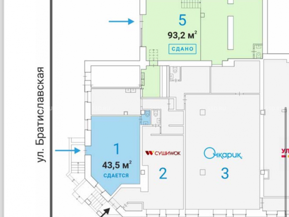 Братиславская улица, д. 15, корп. 1 / 43.5 кв. м./ Аренда / Помещение свободного назначения (ПСН).