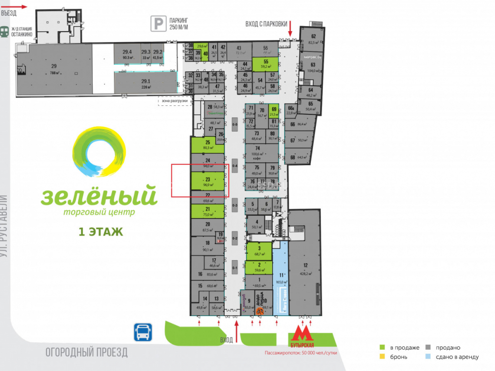 Продается торговое помещение в СВАО по адресу: г.Москва, Огородный проезд, 10. У выхода из метро "Бутырская", расположился ТЦ "Зелёный", это новый, современный торговый центр районного значения в шаговой доступности от ж/д станции "Останкино". Первая линия домов Огородного проезда, на пересечении с улицей Руставели. Прекрасная визуализация в любую погоду и мега интенсивный трафик, дополнительно обеспечен, расположенным офисом: "Яндекс-Еда", "Яндекс-Такси".