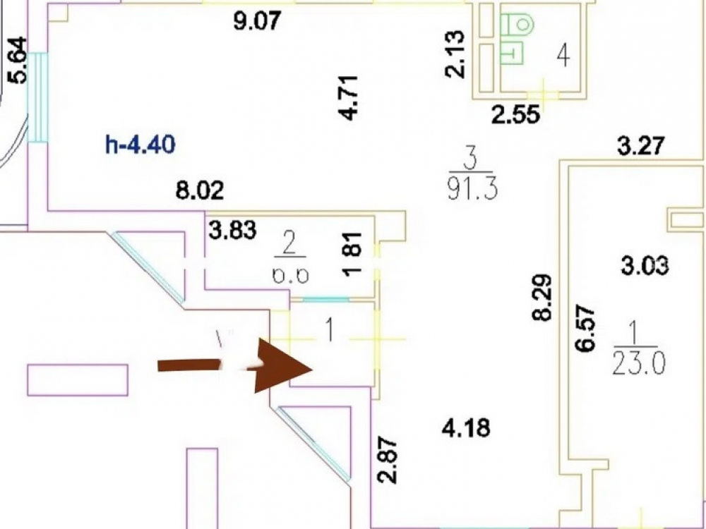 Высота потолков 4,4 м.