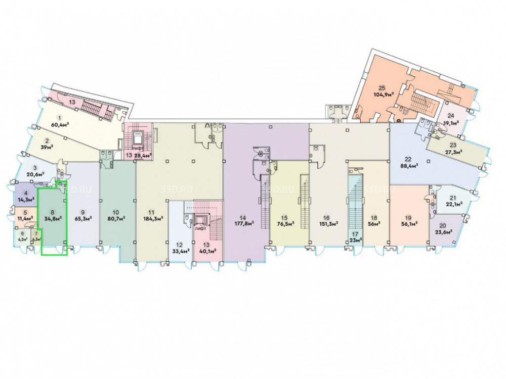 Общая площадь - 34,8 кв.м. Расположено на 1-ом этаже здания, общей площадью 2 400 кв.м. Отдельный вход с фасада со стороны Большой Бронной улицы.