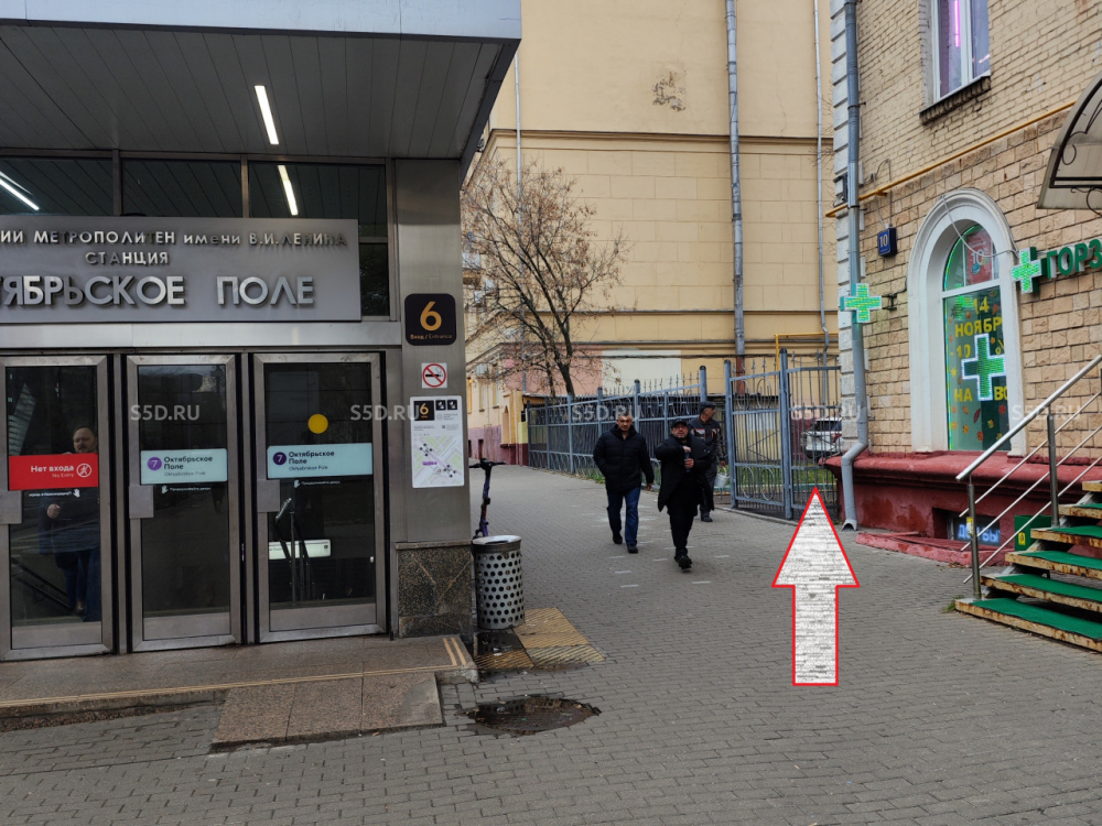 Помещение находится у выхода из м. Октябрьское поле (15 метров) - сверхинтенсивный трафик рядом с помещением в течение всего дня, а также пеший трафик между м. Октябрьское поле и МЦК Зорге.