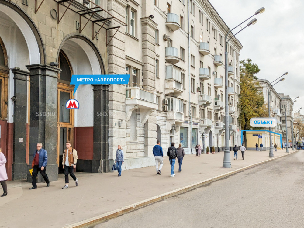 Объект расположен рядом с метро "Аэропорт" - менее 1 минуты пешком.