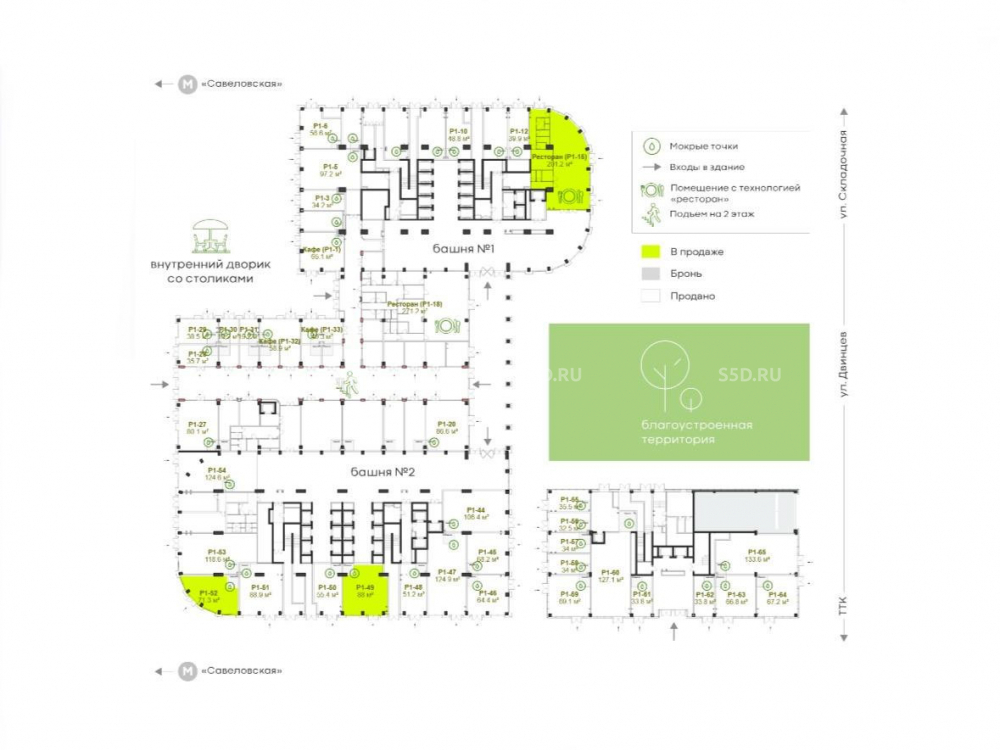 Продажа помещения STREET RETAIL в бц STONE Савеловская по адресу: г. Москва, СВАО, район Марьина роща, ул. Двинцев, д.3. Ближайшие станции метро: Савеловская (кольцевая и радикальная) – 7 мин. пешком, Марьина роща – 13 мин. пешком. Бизнес – центр «STONE Савеловская» представляет собой две 100 – метровые офисные башни, объединенные функциональным стилобатом, в котором предусмотрена собственная развитая инфраструктура. «STONE Савеловская» находится в динамично развивающемся районе. Преимущество бизнес - центра транспортная доступность: в шаговой доступности расположены станции трех линий метро, ТПУ «Савеловская», две линии МЦД, обеспечивающие прямое сообщение с аэропортом Шереметьево и инновационным центром «Сколково», удобный выезд на ТТК. Стабильный внешний трафик.