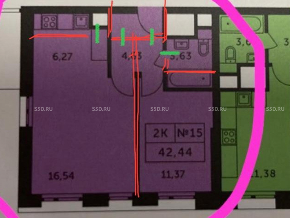 Общая площадь: 55 м2