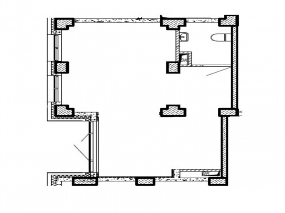 Технические характеристики: Первая линия, 48,5 м2, первый этаж 25-этажного жилого дома, зальная планировка, витринное остекление, высота потолков: 4.5, центральные коммуникации, бесплатная уличная парковка, отделка.