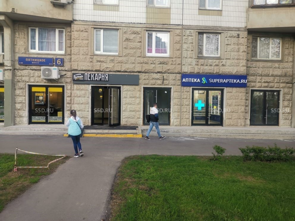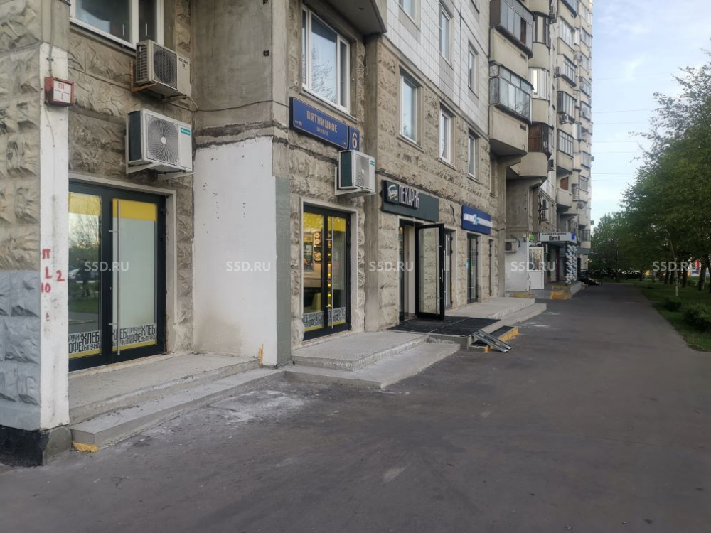 Аренда торгового помещение в СЗАО г. Москвы, р-н Митино, Пятницкое шоссе, д. 6. (5 минут пешком от метро Волоколамская) в 50 метрах от автобусной остановки маршрутов от метро Тушинская, Сокол и Речной Вокзал. Первая линия домов, высокий пешеходный трафик, большой рекламный потенциал, отличная визуализация объекта. Вечерняя сторона, на въезде в спальный район численностью 195 тысяч жителей. Соседи: пекарня, салон красоты, продукты, магазин эзотерики, запчасти для японских а/м; рядом расположен супермаркет "Виктория".
