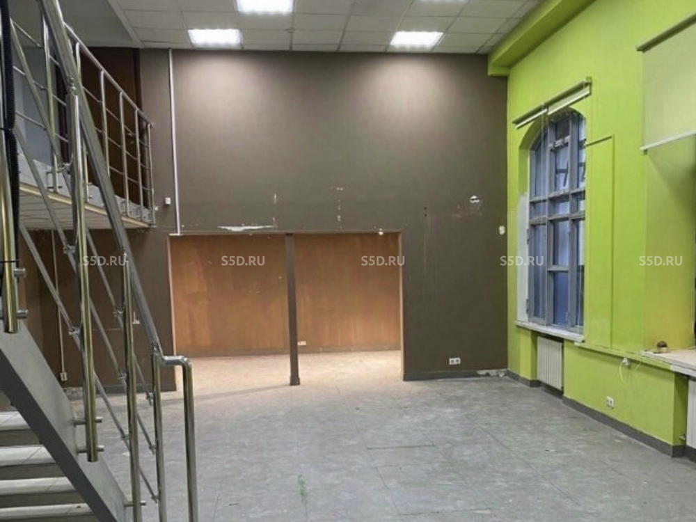 1 этаж 6-этажного жилого дома 1941 года постройки, площадью 207.2 м2, из них 1 этаж 118 м2, антресоль 89 м2. Зальная планировка. Четыре витринных окна по фасаду. Высота потолков от 4.6 до 2.2. м. Городские коммуникации. Выделенная эл. мощность: 35 кВт. Общедомовая вытяжка.