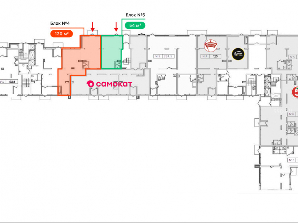 Помещение общей площадью – 120 кв.м. (блок №4), 1 этаж.