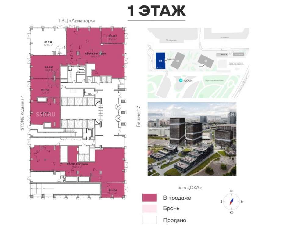 Транспортная доступность: Метро «ЦСКА» и ТЦ «Авиапарк» в 1 минуте пешком.