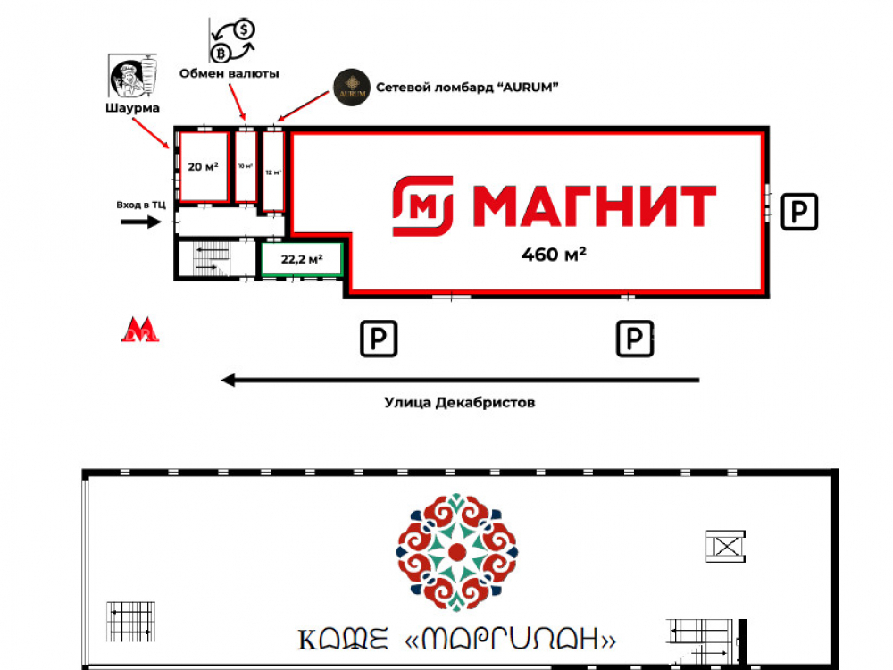 Объект представляет собой 2-этажный ТЦ 1999 года постройки, непосредственно перед выходом из ст. м. «Отрадное» (30 м). В 80 м находится остановка наземного общественного транспорта. Является ближайшим к выходу из метро коммерческим помещением. Густонаселённый жилой район (порядка 185 000 жителей). В радиусе 10-минут пешком проживает порядка 23 000 человек. Сверхинтенсивный пешеходный трафик. Большие рекламные возможности. Собственная парковка на 20 м/м