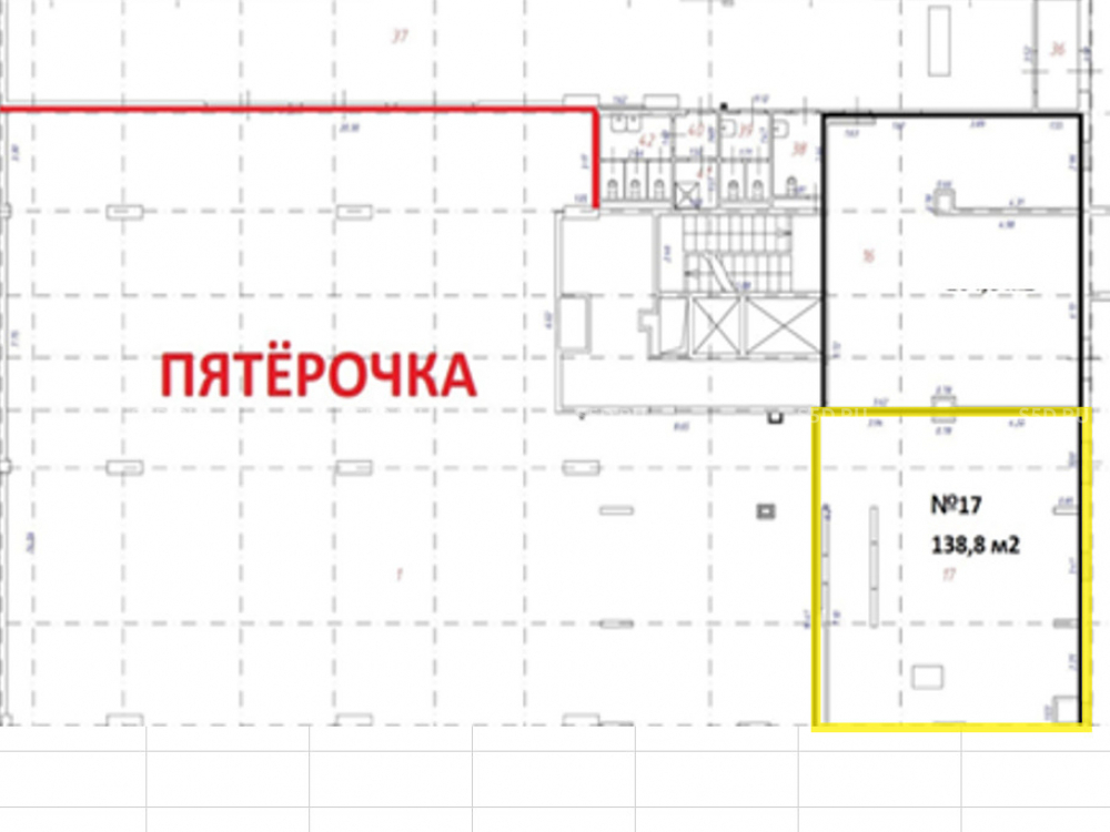 1-ый этаж жилого 10-этажного дома. Общая площадь 138,8 м², Прикассовая зона супермаркета "Пятёрочка". Отдельный вход, витринное остекление, открытая планировка. Мощность электроэнергии 28 кВт. Высота потолков - 4 м.