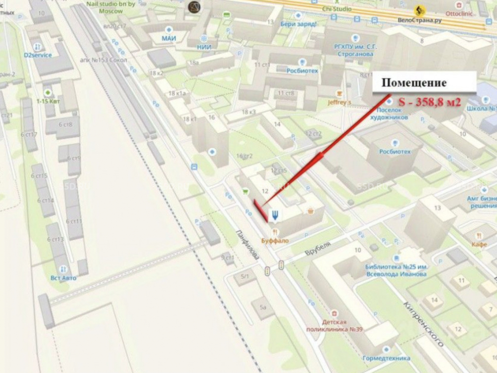 Продается нежилое помещение свободного назначения в жилом доме по адресу: Москва, САО, р-н Сокол, ул. Панфилова, 12, площадью 359 м².