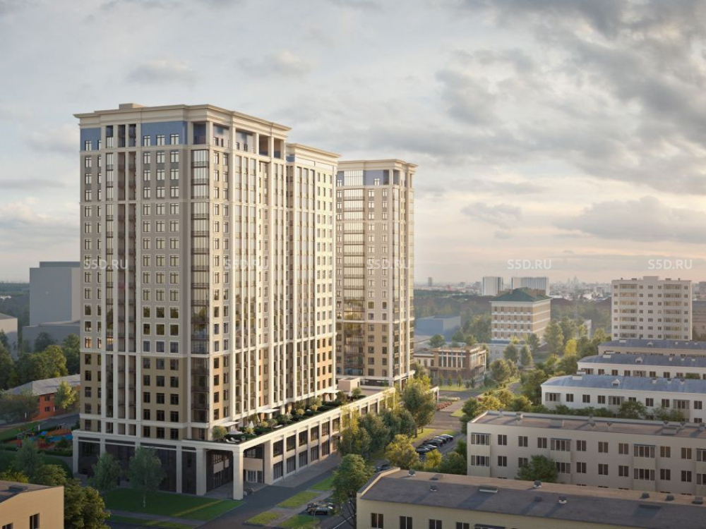 ЖК бизнес-класса с отдельно стоящей автостоянкой. Монолитное жилое здание состоит из двух корпусов переменной этажности 18-19 уровней, объединенных общим подземным паркингом.