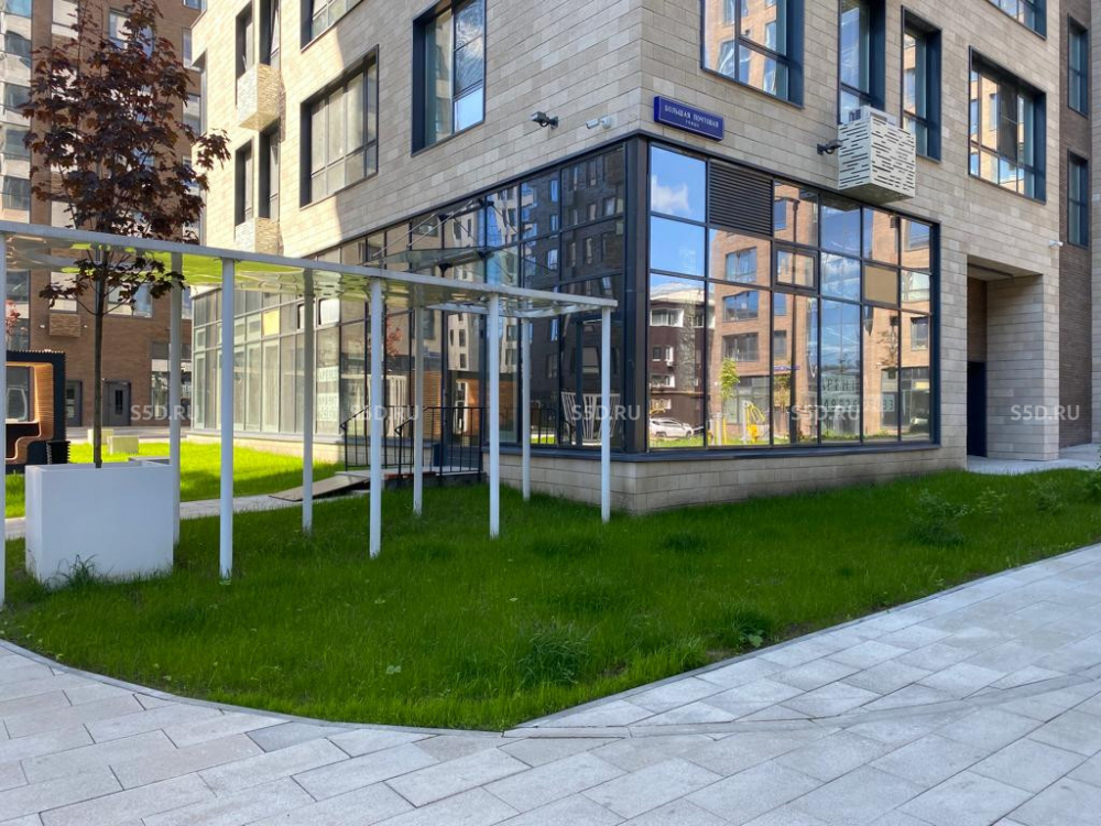 Помещение расположено в торговой галерее ЖК "Резиденции Архитекторов". Входная группа торговой галереи находится на первой линии пешеходной аллеи, ведущей от пешеходного моста через реку Яуза до ул. Большая Почтовая.