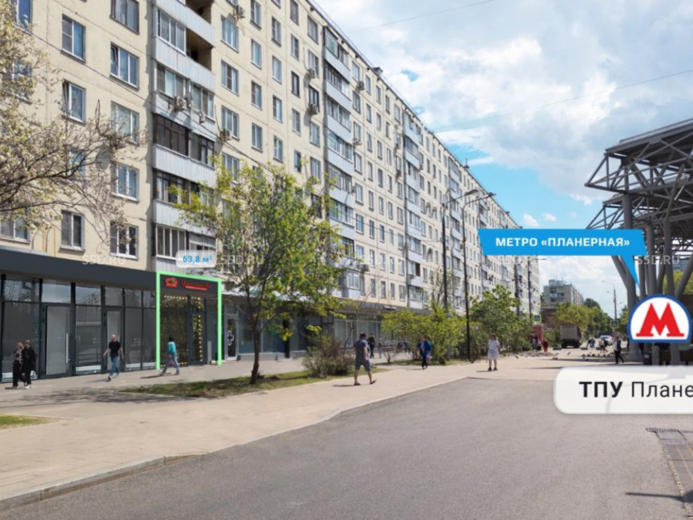 Предлагается в продажу арендный бизнес по адресу: г. Москва, СЗАО, Планерная улица 12к1. Помещение расположено в 70-ти метрах от станции метро Планерная. Прямая видимость от метро. Сверх-интенсивный пешеходный трафик на выходе из метро - вдоль фасада здания. Район с высокой плотностью застройки.