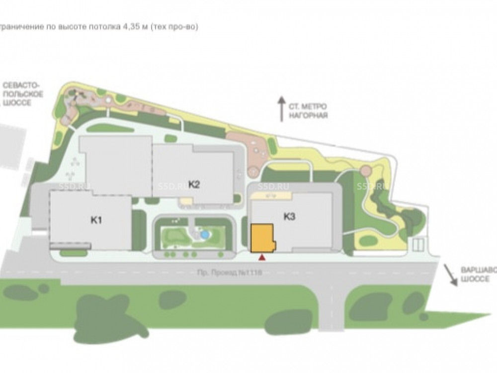 В составе проекта будет возведено три корпуса высотой 22-28-34 этажа на 934 квартиры и всего лишь 9 коммерческих помещений. Пешим шагом от метро "Нагорная".