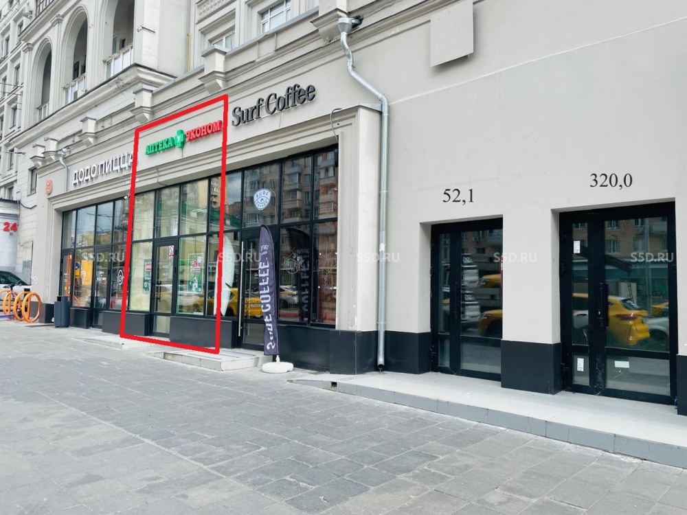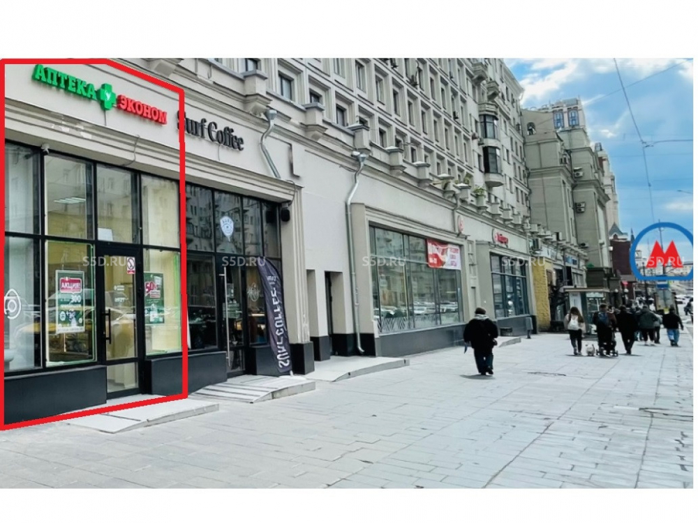 Торговое окружение: Макдоналдс, Магнолия, ВкусВилл, МТС, Подружка, в соседнем помещении - Пятерочка. Большое количество магазинов и аптек, точек общепита. Сложившаяся торговый коридор.