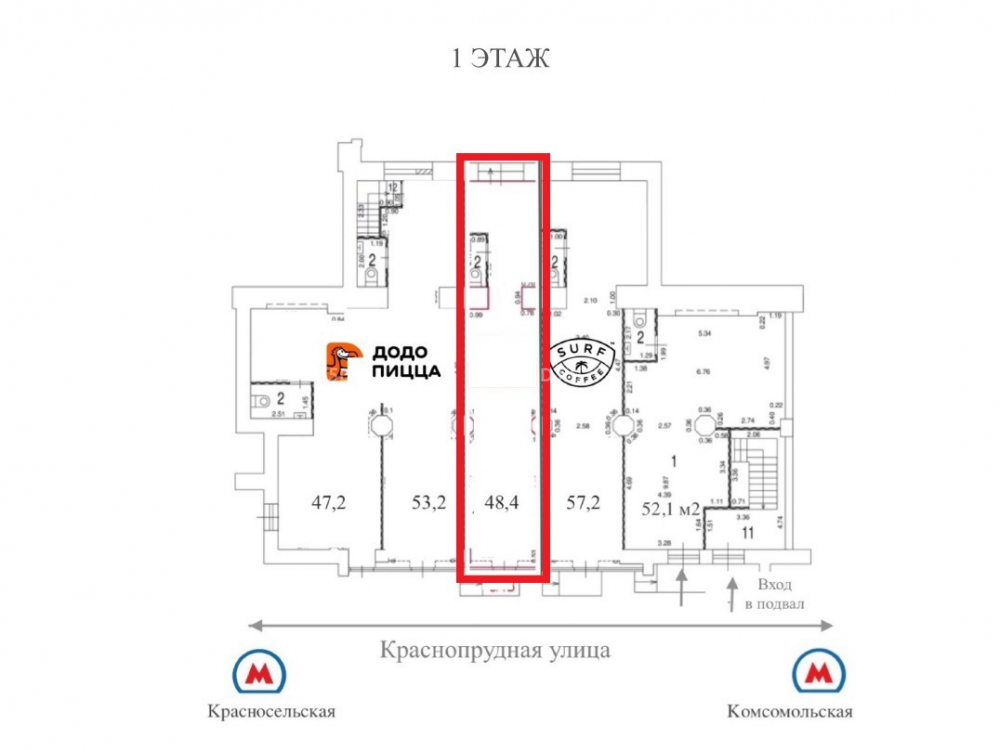 Краснопрудная улица, 22-24 -50 кв.м. / Аренда торгового помещения / ПСН