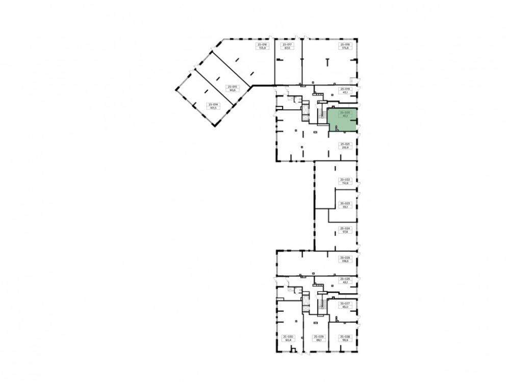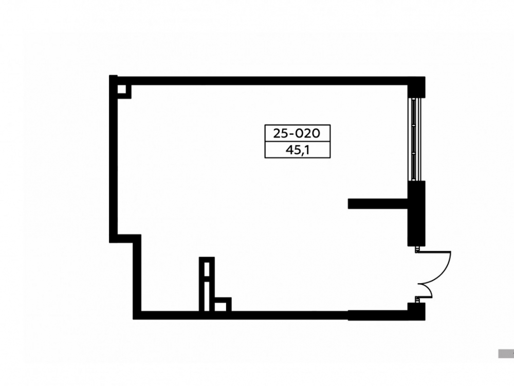 1 этаж 17-ти этажного жилого дома, общей площадью 45.1 м², высота потолков 4,66 м, электрическая мощность 9,02 кВт, вход в помещение с первой линии, витринное остекление, зальная планировка.