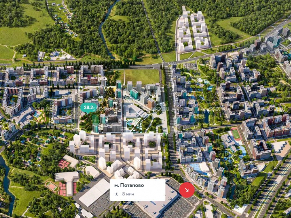 9 км от МКАД и 1,7 км от ст. метро «Потапово» (2024 г.).