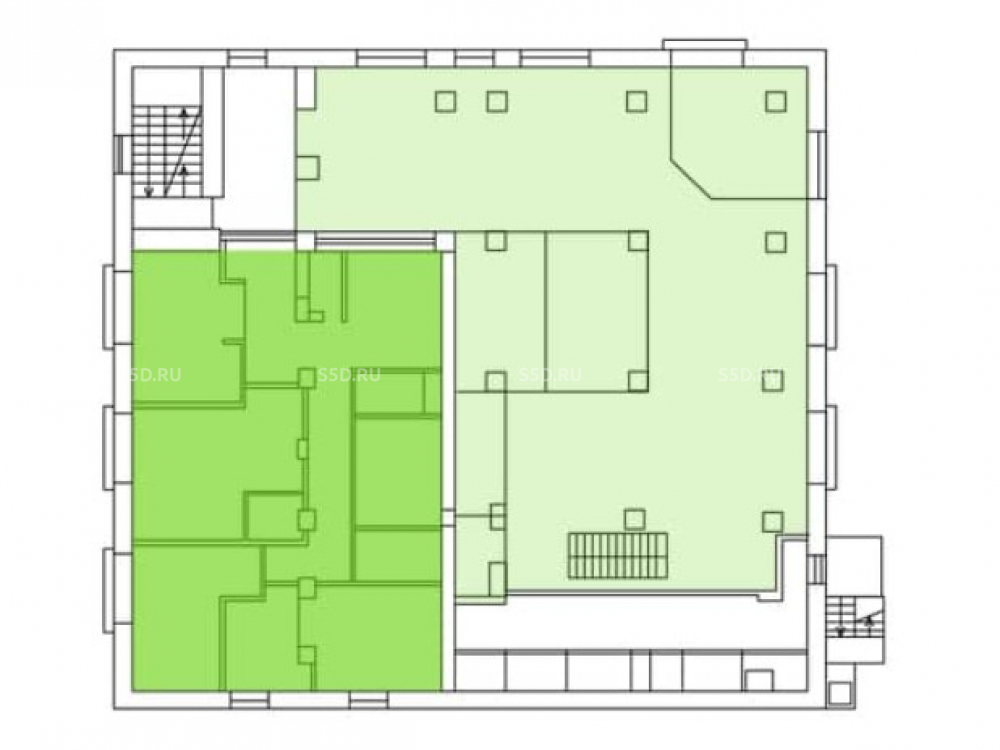 Предлагается к покупке офисное помещение , находящееся в корпусе №1. На планировке выделено ярко-зелёным цветом.