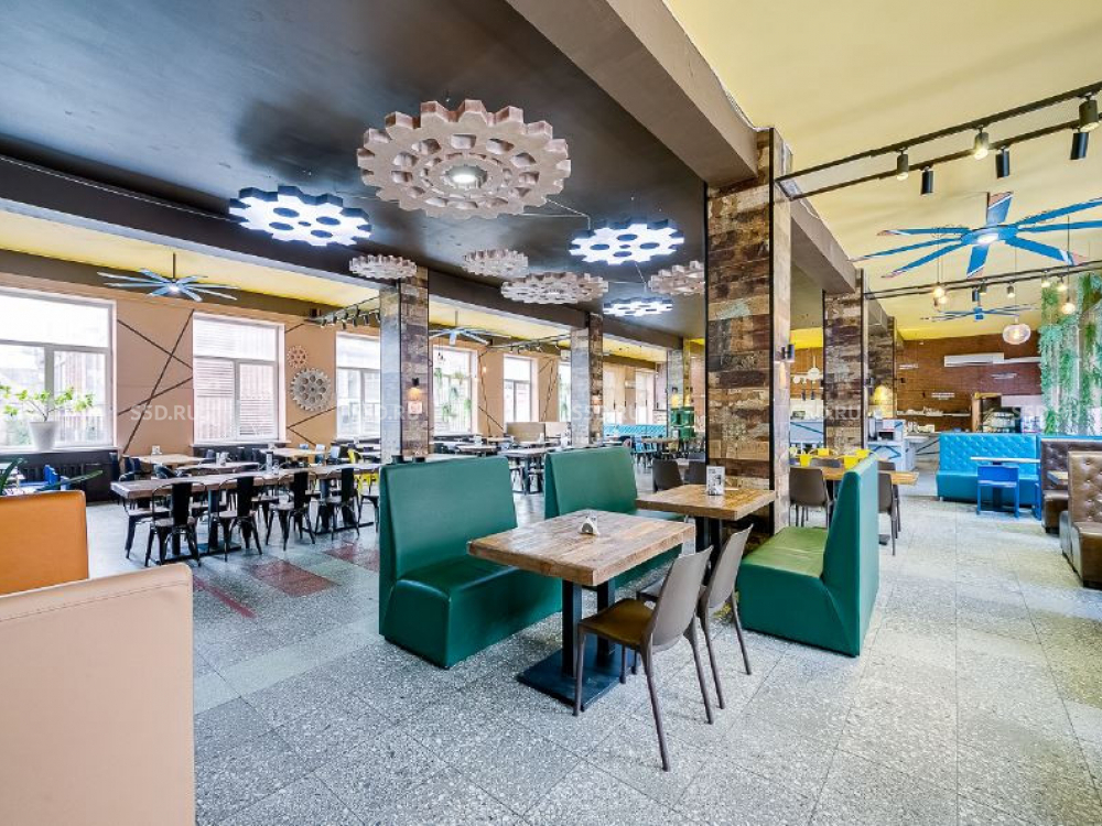 Высота потолка - более 4м. Выполнен ремонт, состояние помещения за выездом столовой. Центральная система кондиционирования.