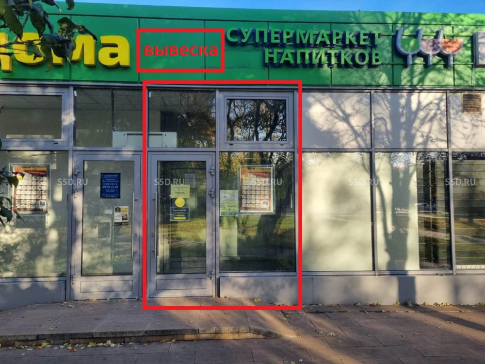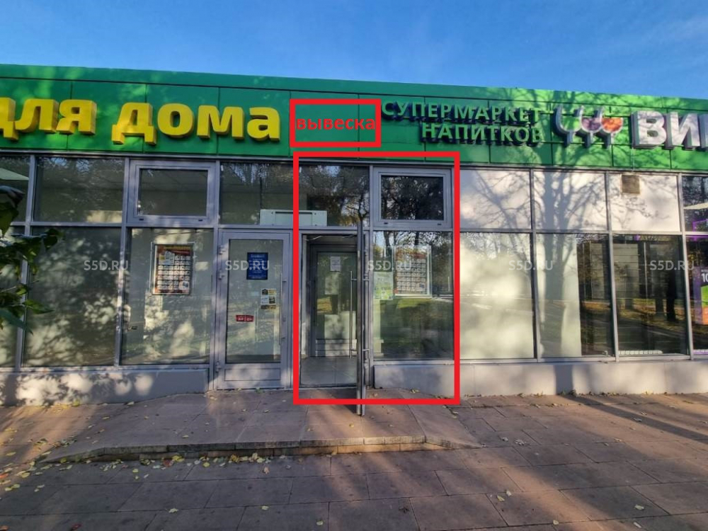 Установлена тепловая завеса. Розетки, освещение. Место под вывеску на фасаде.