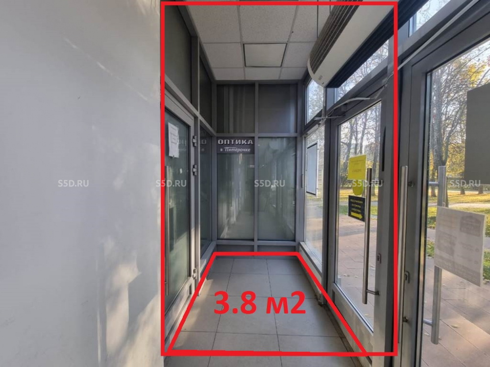 Общая площадь - 3.8 м2. Витринное остекление. Электрическая мощность - 5 кВт (возможно увеличение). Высота потолков - 4.2. м. Состояние помещения - с отделкой. Коммуникации: отопление, электричество. Отдельный вход.
