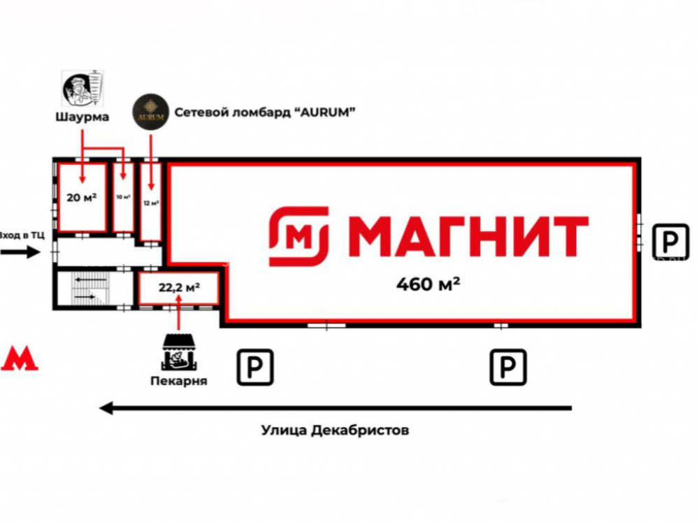 Объект расположен на первом этаже в отдельно стоящего здания (ОСЗ), непосредственно перед выходом из ст. м. «Отрадное». Рядом находится остановка наземного общественного транспорта. Ближайшее к выходу из метро коммерческое помещение. Густонаселённый жилой район (порядка 185 000 жителей). Ежедневный пешеходный трафик около 89.000 человек. В радиусе 10-минут пешком проживает порядка 23.000 человек. Сверхинтенсивный пешеходный трафик. Большие рекламные возможности. Собственная парковка на 20 м/м