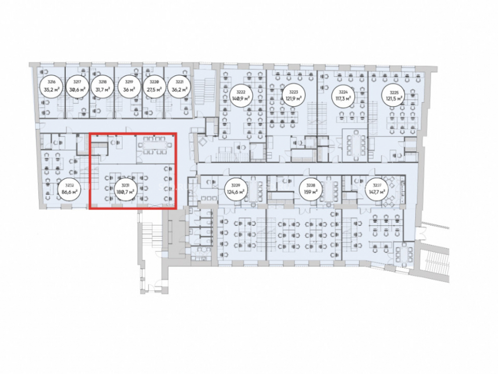 Офисное помещение, площадью м2, расположено на 1 этаже 2-х этажного здания.