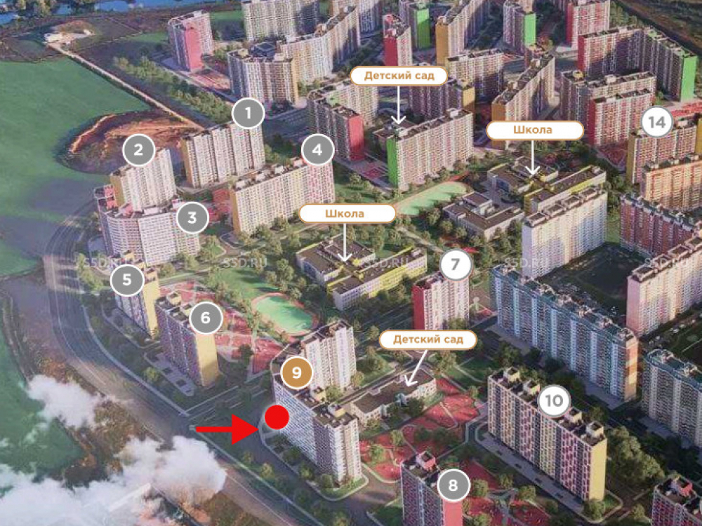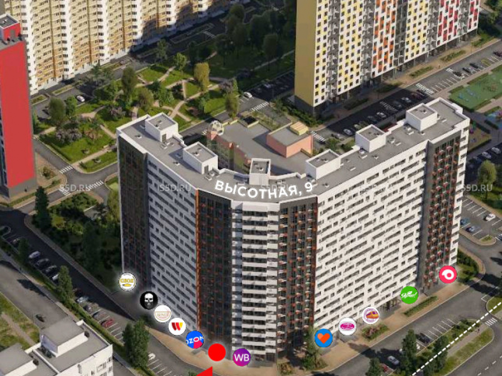 Помещение находится в крупном жилом массиве из 26 домов по 18 этажей.
