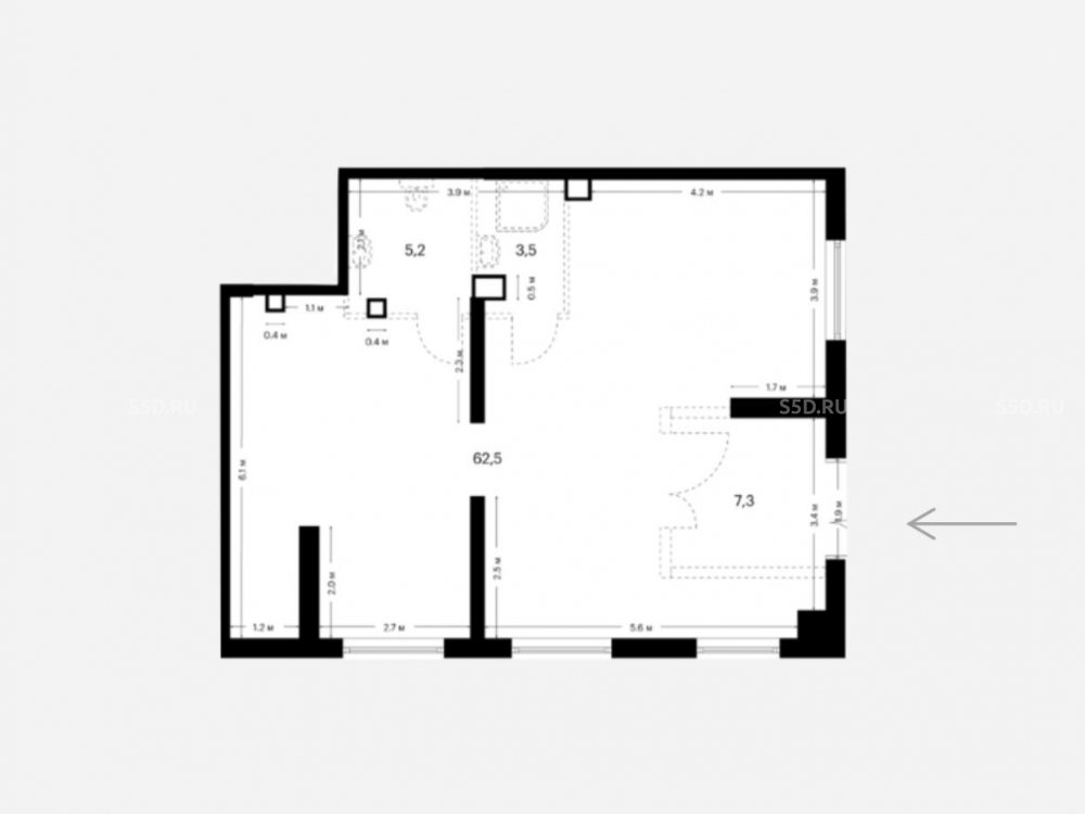 помещение на 1-м этаже 24-х этажного дома, с входом с улицы, общая площадь 77.2 м², Высота потолков: 4 м. Электричество 15,4 кВт