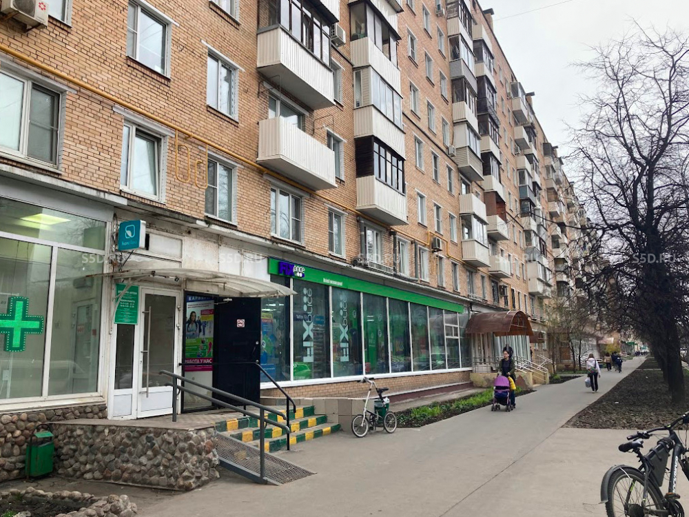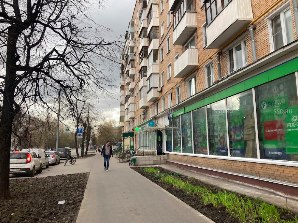 Сложившийся плотный жилой массив района "Перово", первая линия улицы, прямая видимость. Оживленный автомобильный и пешеходный трафик. Кирпичный жилой 9-этажный дом 1971 года постройки. Не входит в программу реновации. Парковка непосредственно перед помещением. До метро Перово 10 минут пешком.