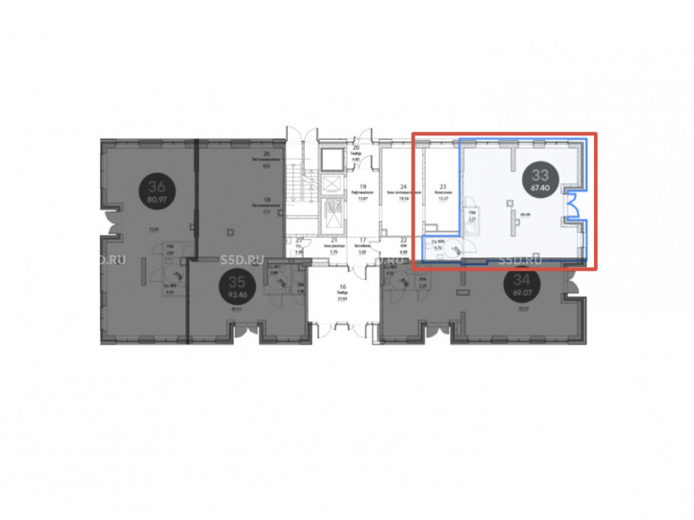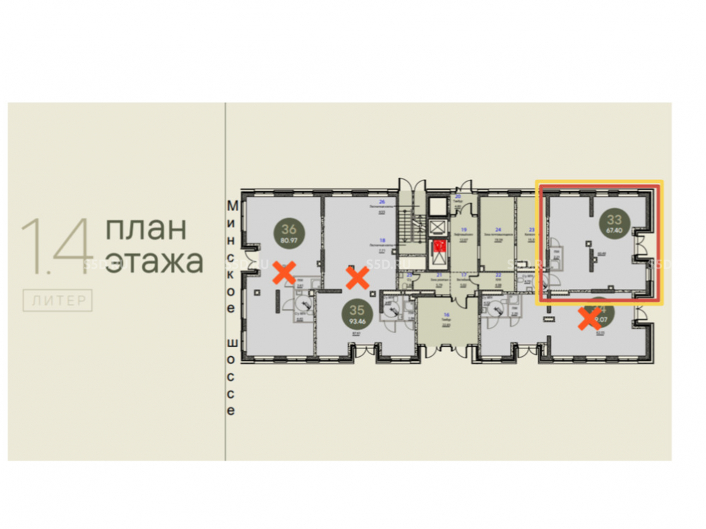 Общая площадь: 67.4 м2
