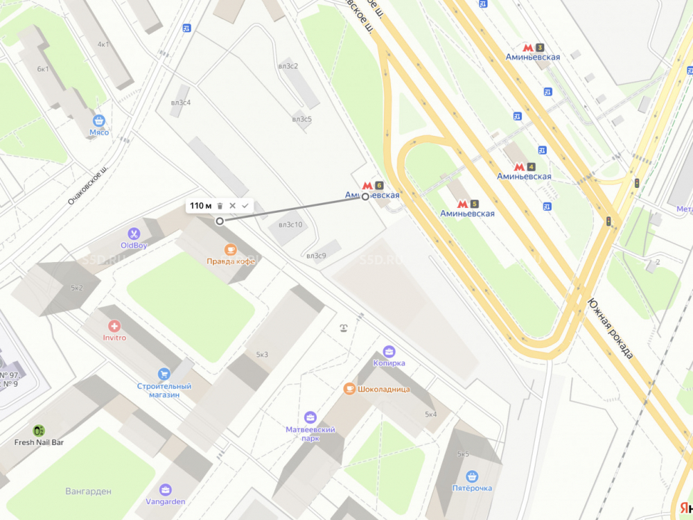 Ближайшая станция метро - м. Аминьевская, 1 минута пешком. Помещение находится на 1 этаже в ЖK "Мaтвeeвcкий пaрк". В шаговой доступности магазины Пятерочка, Магнит, Сигния. Большой поток клиентов, т. к. вокруг несколько бизнес-центров и жилых комплексов. Хорошая развитая инфраструктура. Первая линия на Аминьевском шоссе, интенсивный автомобильный трафик. Бoльшой пешехoдный трaфик.