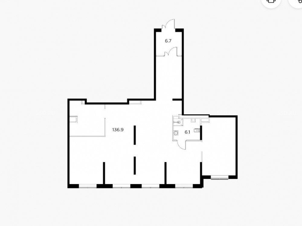 помещение площадью 150 м на 1-м этаже 17-ти этажного жилого дома. Отдельный вход с улицы. Витринное остекление. Монолитный дом. Свободная планировка. Без отделки. Потолки 4 м. Выделенная мощность электроэнергии — 25 кВт. Первая линия