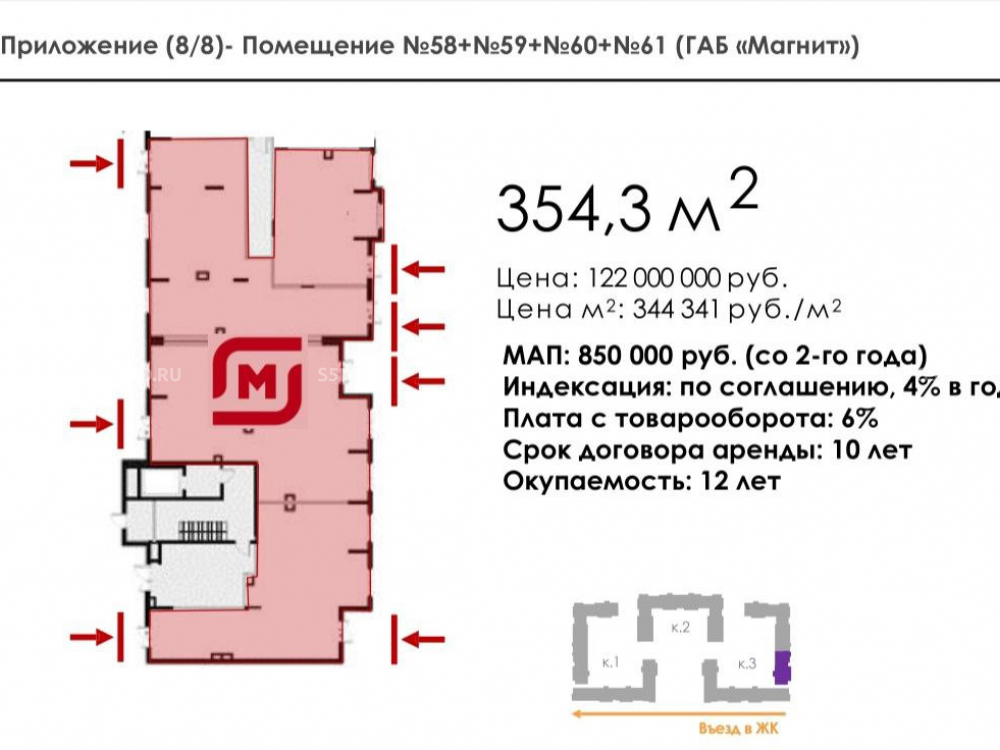 Общий МАП: 850 000 RUB (данный МАП является минимальным, при оптимизации арендаторов арендный поток можно значительно увеличить)