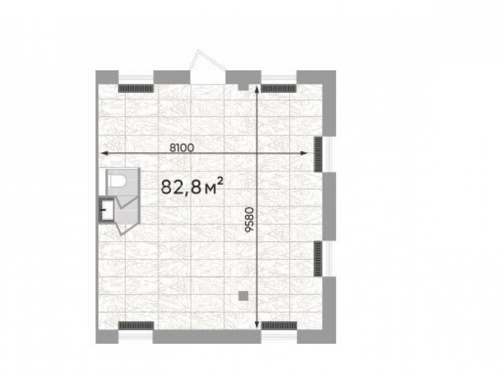Площадью 82,8 м². Высота потолков 4.5 м.