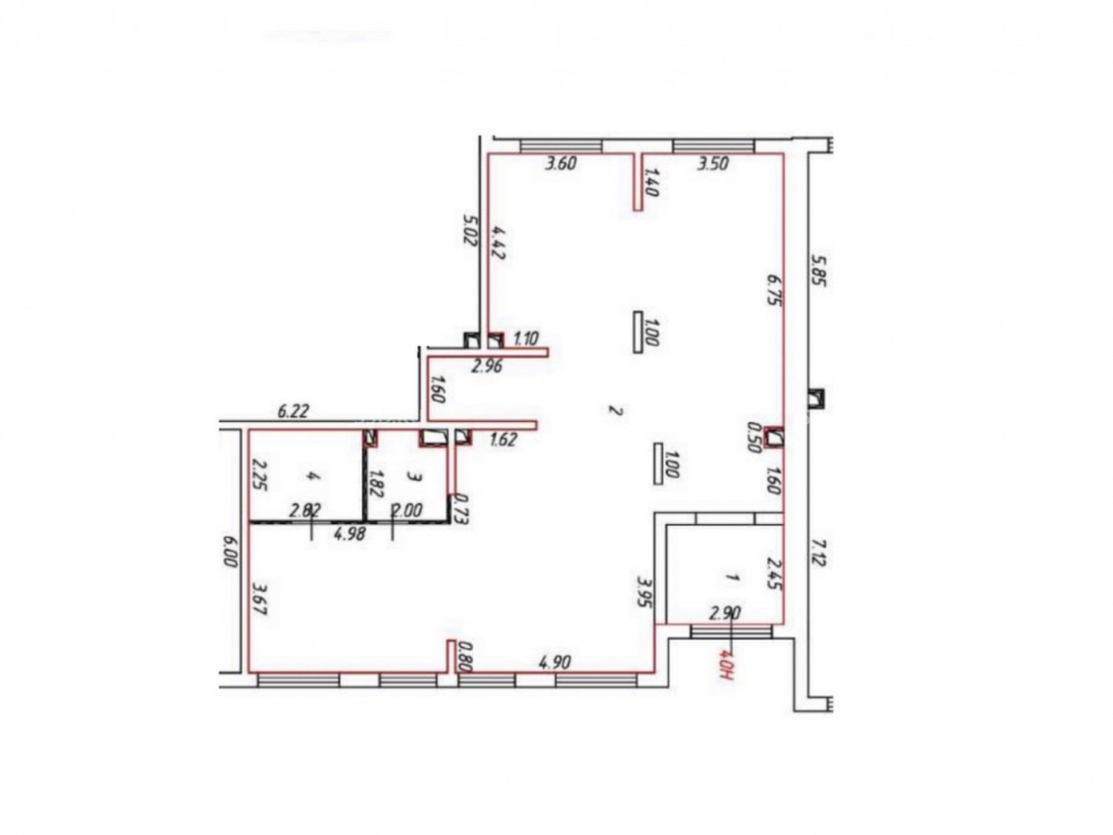 1 этаж 14-ти этажного жилого дома. Помещение площадью 121,7 кв.м. Отдельный вход с улицы. Высота потолков 4 м. Выделенная мощность электроэнергии 26 кВт ( возможно увеличения). Все центральные коммуникации. Без отделки, бетон.