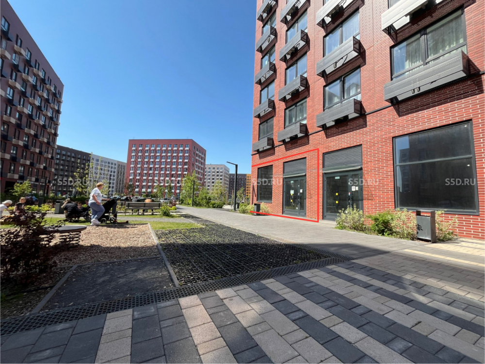 Помещение расположено на главной центральной улице жилого комплекса в самом центре. Вокруг все помещения сданы, дома построены и заселены в 2022-23 году. Помещение угловое с витринами и рекламой на две стороны. В данном месте самая большая концентрация жителей, и постоянного пешеходного трафика. Напротив помещения центральный пеший бульвар. Рядом центральная парковка для гостей и жителей. Место для рекламы на фасаде. Все центральные коммуникации.