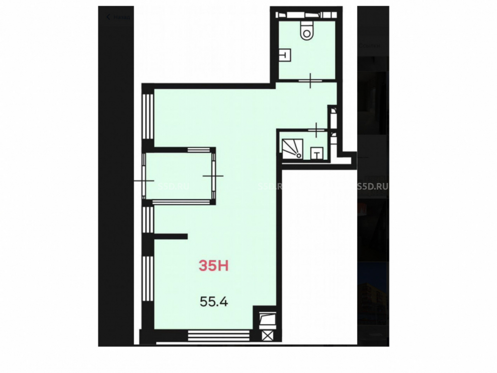 Общая площадь: 55.4 м2