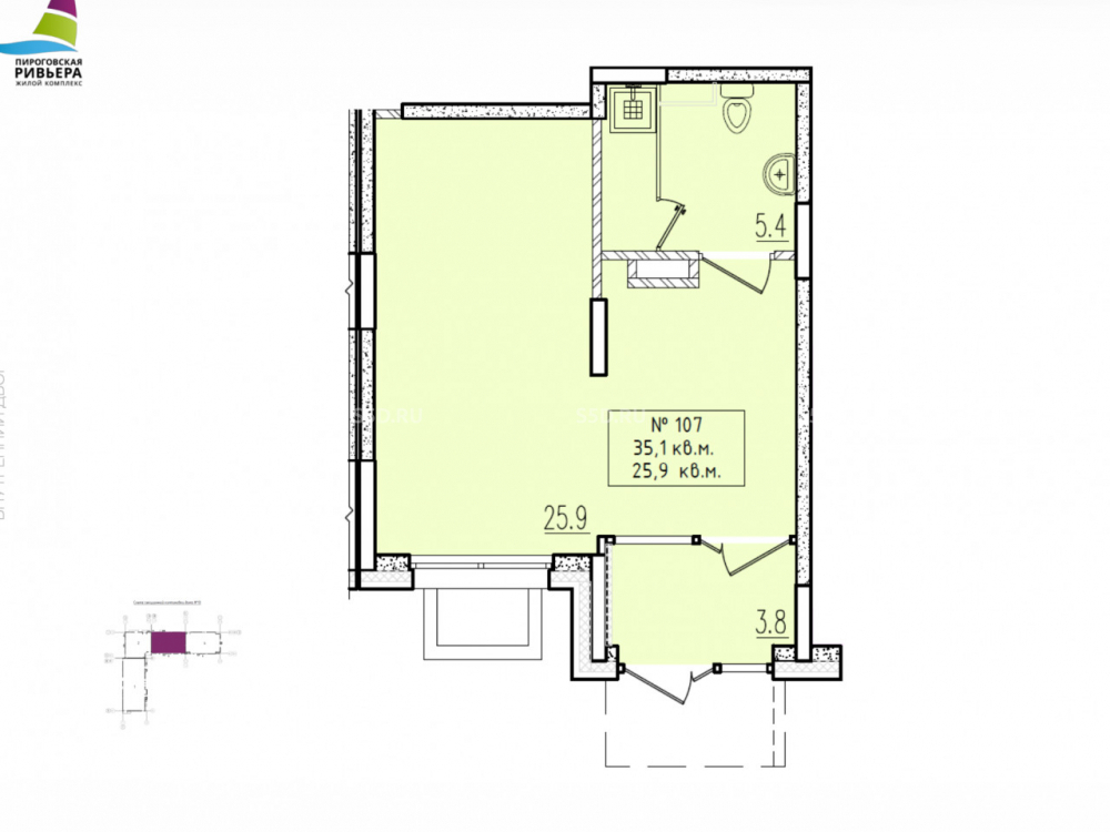 Общая площадь: 35 м2