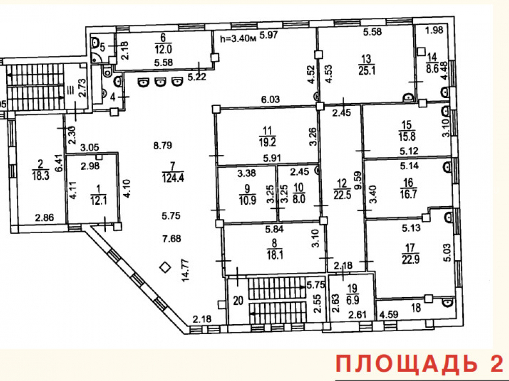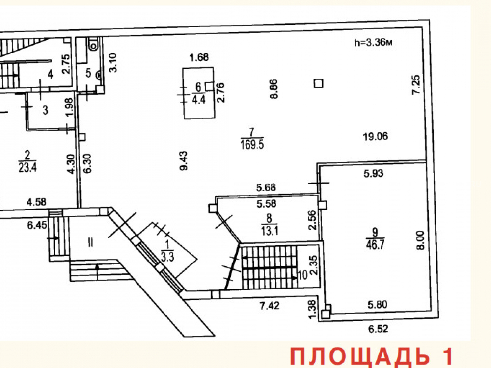 Высота потолков: 3.2 м.