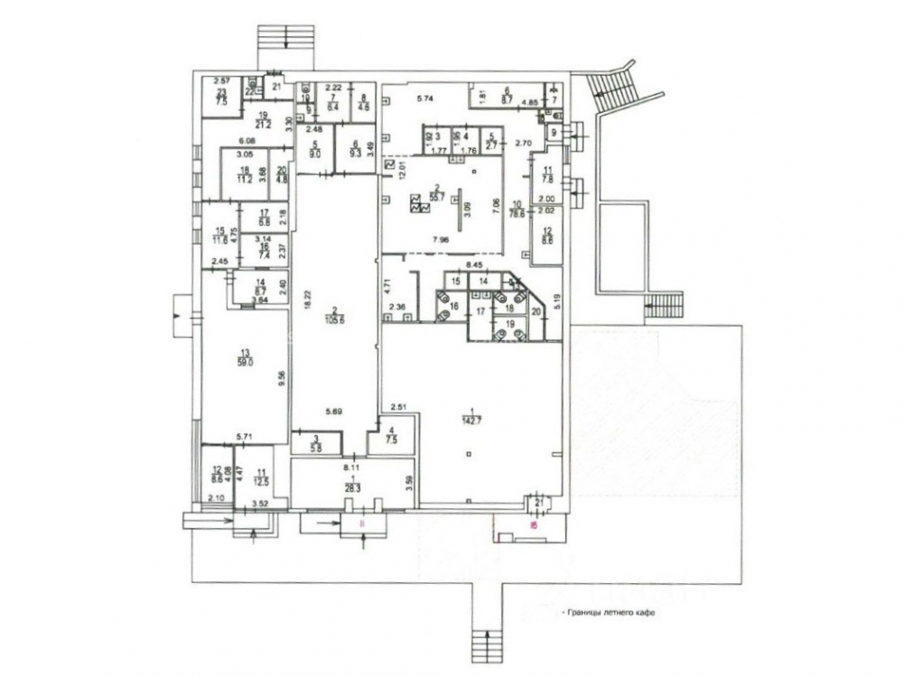 1-ый этаж одноэтажного отдельностоящего здания. Площадь: 176,5 м². Состояние отделки: за выездом арендатора (банк). Отдельный вход с фасада здания, санузел, наличие центральных коммуникаций. Высота потолков - 3,25 м. Электрическая мощность - 140 кВт. Возможность организации летней веранды.