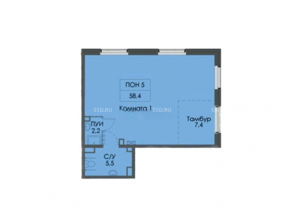 Общая площадь: 58.4 м2